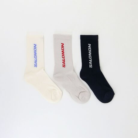 毎シーズン人気を博す<Salomon>のロゴがアクセントを効かせるクルーソックス3足セット。