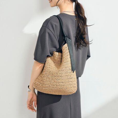 グログランハンドル柄編みトート