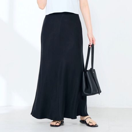 ・バイヤス裁ちにした、柔らかくしなやかなドレープ感が女性らしい、裾広がりのシルエット