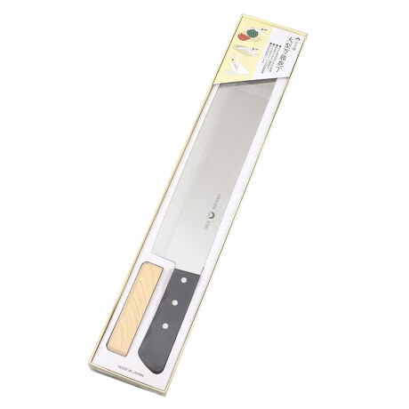 [型番:435466]【デザイン】●刀身が長いので、普通の包丁では切りづらかった白菜やキャベツ、スイカなどの大きな食材も容易に切ることができます。●サビに強く研ぎやすいステンレス製の刃で、お手入れも簡単です。●峰を押さえるための補助柄が付いているので、手を痛めることなく力を入れることができます。【スペック】サイズ/全長:約49.5cm刃渡り:約34.5cm幅:約7cm重量/約320g内容量/1本材質/刃部:ステンレス刃物鋼柄:自然木生産国/日本製