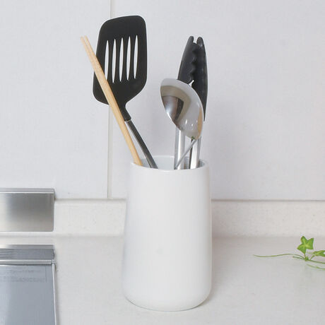 [型番:438345]【デザイン】●菜箸やお玉などの収納にぴったりな磁器製キッチンツールスタンドです。●コンロ周りに立てて収納することで調理中の使いたい時にサッと取り出せます。●落ち着いた雰囲気でどんなキッチンにも使いやすいです。【スペック】サイズ/約高さ16.5cm直径:約10.5cm重量/約847g内容量/1個材質/磁器生産国/中国製