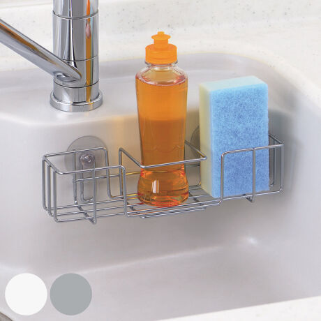 [型番:438924]【デザイン】●吸盤式で簡単に取り付けられるスリムポケットです。●洗剤ボトルとスポンジをきっちり仕切れる形状になっています。●防サビ加工が施されているので水回りでも安心してお使いいただけます。 【スペック】サイズ/約幅24×奥行7.5×高さ6cm重量/約168g内容量/1個材質/鉄(クロムめっき)吸着盤:塩化ビニル種類/シルバー、ホワイト生産国/中国製耐荷重/約1kg