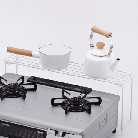 [型番:439366]【デザイン】●コンロ周りのスペースを有効活用できる据置き型コンロに最適なコンロ奥ラックです。●よく使う鍋やキッチン小物の収納や調理中の鍋などの一時置きに便利です。●使わない時はコンパクトに足を折りたためます。●コンロ周りを傷つけにくいゴム足付きです。【スペック】サイズ/約幅62×奥行15×高さ24cm重量/約790g内容量/1個材質/本体:鉄(エポキシ樹脂塗装)すべり止め:合成ゴム生産国/中国製耐荷重/約5kg