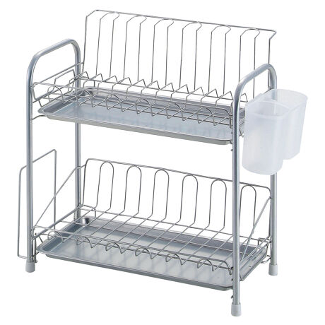 ●食器、グラス、カップなどがたっぷり収納できる2段式の水切りバスケットです。