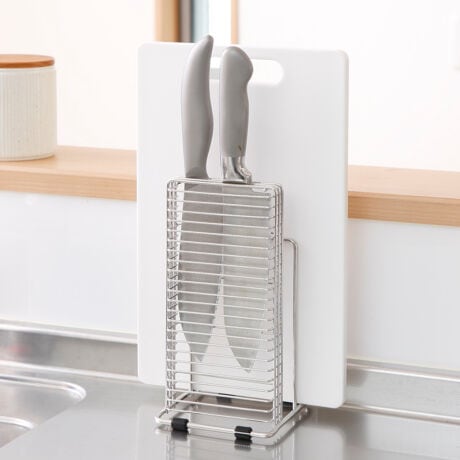 ●サビに強く、丈夫で衛生的なステンレス製の包丁・まな板スタンドです。