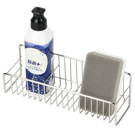 [型番:441027]【デザイン】●アットアクアシリーズの吸盤付き洗剤・スポンジラックです。●シンクの壁面に吸盤で簡単に取り付けられます。●ワイドサイズなので食器用洗剤とスポンジをまとめて収納できます。●丈夫なステンレス製で錆びに強いので安心です。【スペック】サイズ/約幅24×奥行8×高さ8cm※吸盤を含まず重量/約193g内容量/1個材質/本体:ステンレス鋼吸盤:塩化ビニル生産国/中国製