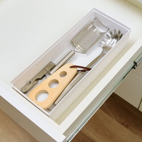 ●キッチンの引き出しの中をサイズ別に分けて、様々なキッチンツールの定位置を作り美しく収納できます。