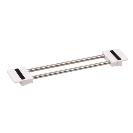 [型番:447390]【デザイン】●キッチンのスペースを活用出来るSサイズのパイプ棚です。●錆びや汚れに強いステンレス製です。●シンクに合わせてぴったりフィットするスライド式です。●約31〜50cmのシンクに対応しています。【スペック】サイズ/幅6×奥行33.5〜56×高さ3cm重量/約95g内容量/1個材質/金属部:ステンレス鋼樹脂部:ABS樹脂パーツ別耐熱温度/樹脂部:80度耐荷重/1kg