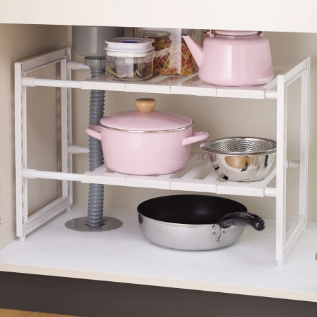 ●シンク下を無駄なくスッキリ片付けられる2段ラックです。