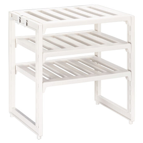 ●シンク下を無駄なくスッキリ片付けられる3段シェルフです。