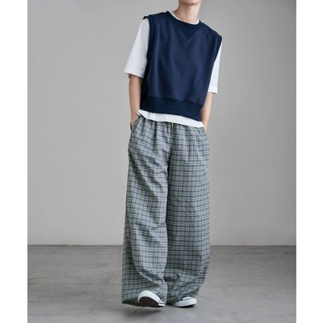 チェック柄コットンワイドパンツ