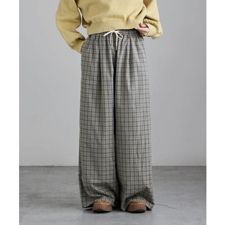 チェック柄コットンワイドパンツ