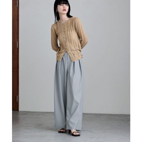 etoll. エトル ほどよい切れ味をもたらすレザー素材で仕立てたタックワイドパンツの登場です。