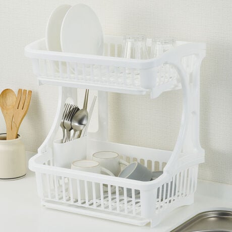 ●シンクサイドにスッキリ置けるスリムタイプの2段水切りラックです。