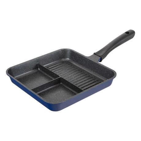 ●お弁当のおかずを3品同時に効率良く調理できる、仕切りつきのフライパンです。