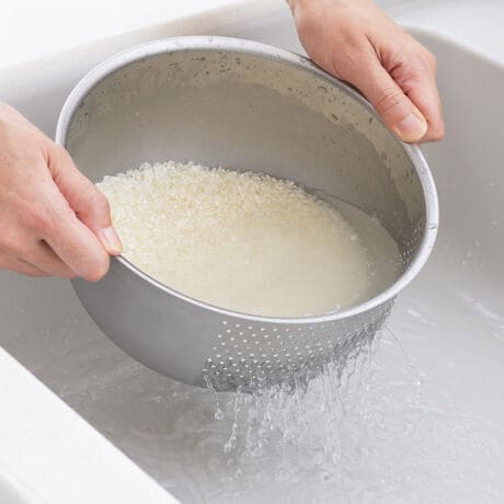 ●水切り穴はお米がこぼれない大きさで、1粒も落とすことなく洗えます。