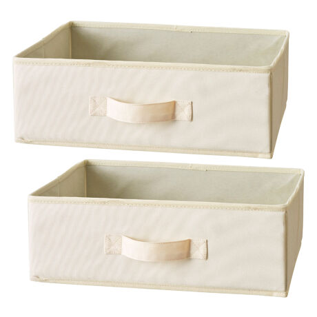 [型番:453827]【デザイン】●使いやすく整理整頓できるインナーボックス横型ハーフ 同色2個入りです。●カラーボックスの横幅に対応しています。●底板付きで丈夫な仕様です。●高い場所や低い場所からも取り出しやすい取っ手付きです。【スペック】サイズ/約幅38×奥行26×高さ12.5cm重量/約650g内容量/同色2個入り材質/本体:ポリエステル、ポリプロピレン芯材:厚紙種類/アイボリー、ブラウン原産国/中国組立状態/お客様組立品