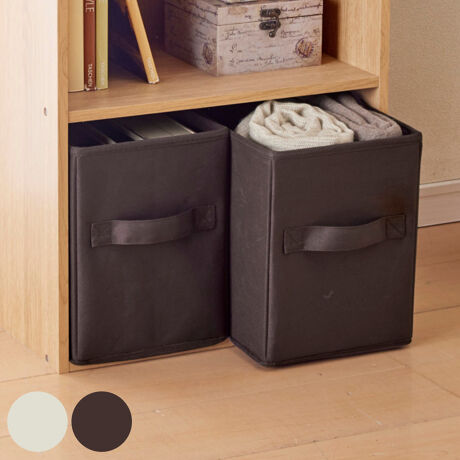 [型番:453829]【デザイン】●使いやすく整理整頓できるインナーボックス縦型ハーフ 同色2個入りです。●カラーボックスに対応しています。●底板付きで丈夫な仕様です。●高い場所や低い場所からも取り出しやすい取っ手付きです。【スペック】サイズ/約幅19×奥行26×高さ25.5cm重量/約690g内容量/同色2個入り材質/本体:ポリエステル、ポリプロピレン芯材:厚紙種類/アイボリー、ブラウン原産国/中国組立状態/お客様組立品