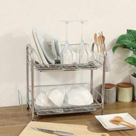 ●食器やグラスなどがたっぷり収納できる、ステンレス製の2段式水切りラックです。