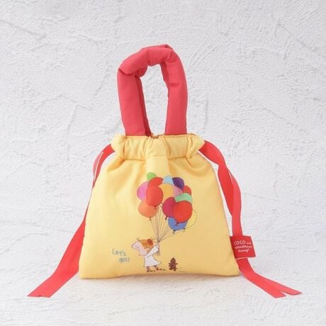 ふかふかの持ち手とリボンがかわいい、ココちゃんの巾着ポーチ。