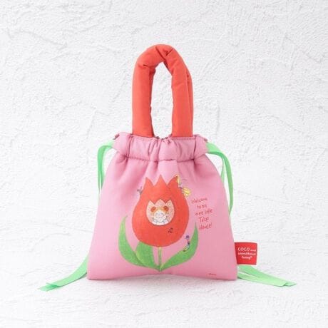 ふかふかの持ち手とリボンがかわいい、ココちゃんの巾着ポーチ。