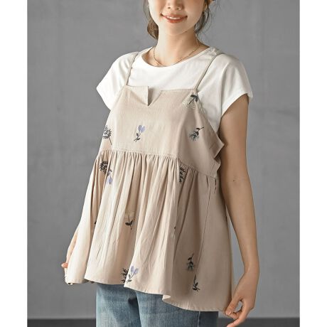 TシャツSET花刺繍キャミソールアンサンブル