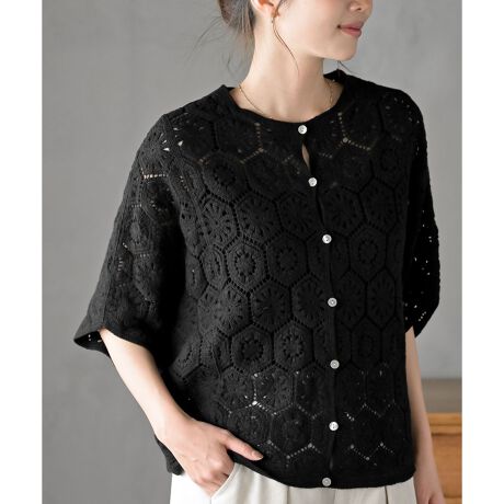 カギ針レースワイドカーディガン