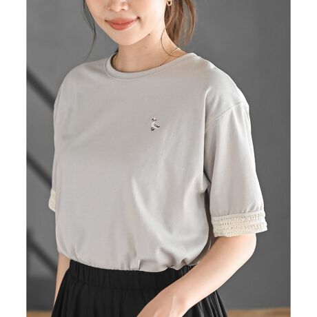 袖レースでフェミニンに仕上げたカットソーTシャツ