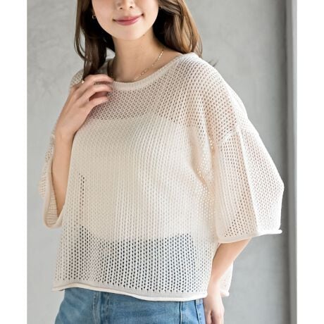 メッシュの編地が爽やかな印象を与えるシアーニット。