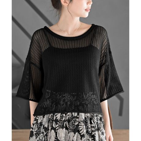 メッシュの編地が爽やかな印象を与えるシアーニット。