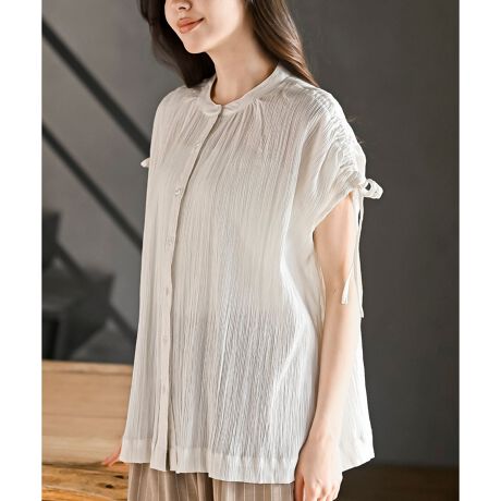 クシュっとしたディテールがフェミンなムードを演出してくれるブラウス。