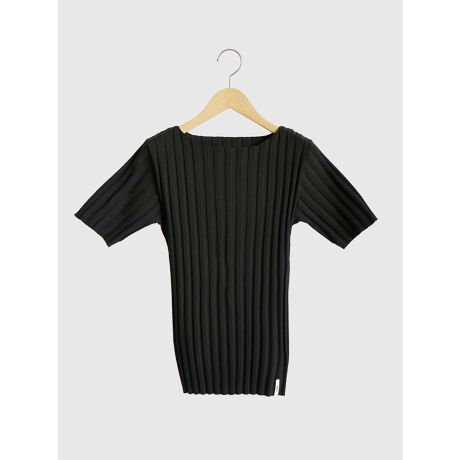 立体感のあるワイドなリブが目を惹く半袖のニットプルオーバー。