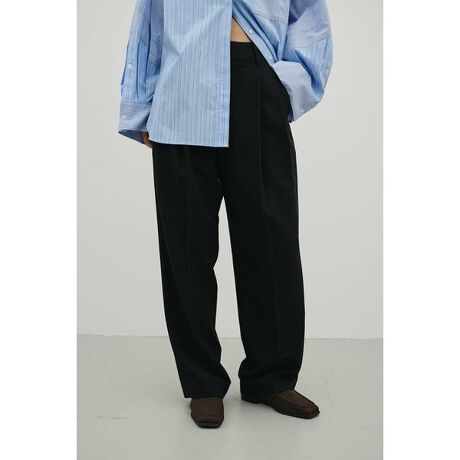 モデル身長166cm(Mサイズ着用)【スタッフ愛用率NO.1 ロングセラーのスラックスパンツ】STYLEMIXER定番人気のベーシックツータックパンツ。深く入れた2本のタックとセンタープレスが美しいシルエットをつくり、上品なマニッシュモードスタイルを完成させます。お腹回りやヒップラインを拾わない絶妙なシルエットが定評となり、お客様にはもちろんスタッフにも大人気のロングセラー商品です。シワになりづらく、カジュアルからビジネスシーンまで幅広くお使いいただけます。透け感なし、ストレッチあり。ウエストベルトループあり、ポケットあり。【お手入れ方法】手洗い可