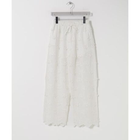 crinkle crinkle crinkleのシグニチャーである、3Dフラワー刺繍を贅沢に施したイージーパンツ。