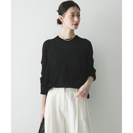 さらりとした肌触りとゆったりしたシルエットで、夏の紫外線・冷房対策をスマートに叶えるUVカット加工ニット。