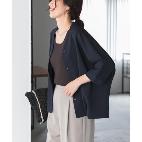 前開き仕様のため、ボタンを開けてジャケットやカーディガン感覚で羽織りとしても活躍します。
