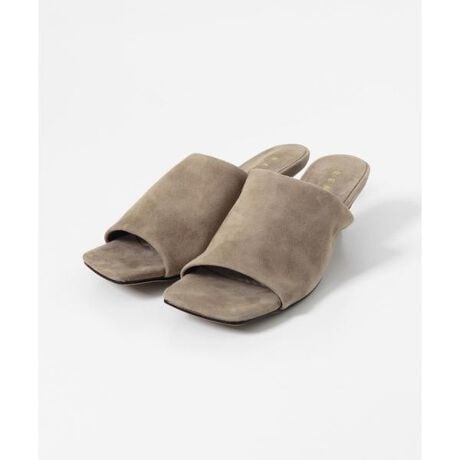 アッパーには、柔らかく足なじみの良いシープスエード(羊革)を使用したミニマルなミュールサンダル。きめ細かな起毛感とマットな質感が特徴で、カジュアルになりすぎず、大人のきれいめスタイルに自然に馴染みます。4cmのヒール高で程よい高さがありながらも安定感があり、長時間の着用でも疲れにくい設計です。