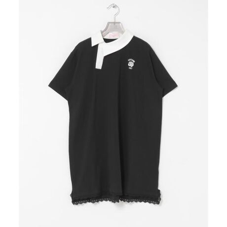 斜めに配した襟元が印象的なロング丈のラグビーシャツ。