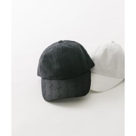 ラフな印象のキャップを、繊細なレース刺繍でレディライクに仕上げた一点。