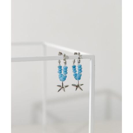 涼しげなブルーのビーズと、愛らしいマリンモチーフを組み合わせた遊び心のあるピアス。