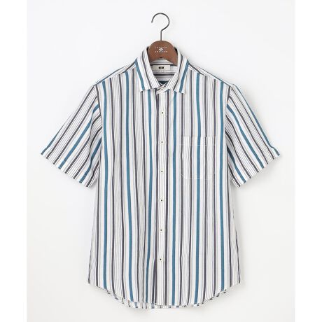 ドビー織りで表現されたストライプ柄の半袖シャツです。襟型はセミワイドフライポイントカラーを採用し、首元をすっきりと見せます。トーンを合わせた配色は落ち着きがあり、大人のカジュアルスタイルに最適です。