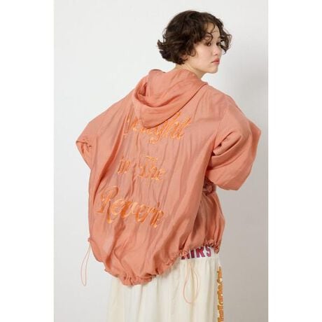 ■ポイント透け感のある柔らかな生地感のフ□ディーブルゾン。バックのメッセージ刺繍が映えるこれからの時期に大活躍の春アウター。■ディテール絶妙な透け感のフ□ディーブルゾンはインナーに困らないアイテム。気温に応じて長袖からタンクトップまで着用可能です。お尻をすっぽり隠してくれる、前後差のある着丈も嬉しいポイント。シルエットは裾口のコードをしっかり絞ることでバルーンシルエットを作ることができます。バックには同色の大きなメッセージ刺繍を施した贅沢デザイン。■スタイリングスキニーデニムやフレアデニムなどですっきりとしたシルエットのアイテムや、逆にボリュームのあるティアードスカートやワイドデニム、どんなシルエットのボトムスとも相性抜群です。[注意事項]※画像の商品はサンプルです。実際の商品と仕様、加工が若干異なる場合があります。※画像の商品は光の照射や角度、お使いのモニター環境により、実物と色味が異なる場合がございます。※着用、お取り扱いの際は、アテンションタグをご確認ください。