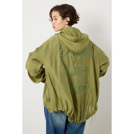 ■ポイント透け感のある柔らかな生地感のフ□ディーブルゾン。バックのメッセージ刺繍が映えるこれからの時期に大活躍の春アウター。■ディテール絶妙な透け感のフ□ディーブルゾンはインナーに困らないアイテム。気温に応じて長袖からタンクトップまで着用可能です。お尻をすっぽり隠してくれる、前後差のある着丈も嬉しいポイント。シルエットは裾口のコードをしっかり絞ることでバルーンシルエットを作ることができます。バックには同色の大きなメッセージ刺繍を施した贅沢デザイン。■スタイリングスキニーデニムやフレアデニムなどですっきりとしたシルエットのアイテムや、逆にボリュームのあるティアードスカートやワイドデニム、どんなシルエットのボトムスとも相性抜群です。[注意事項]※画像の商品はサンプルです。実際の商品と仕様、加工が若干異なる場合があります。※画像の商品は光の照射や角度、お使いのモニター環境により、実物と色味が異なる場合がございます。※着用、お取り扱いの際は、アテンションタグをご確認ください。
