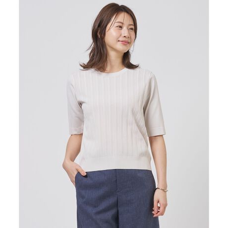 涼やかな風を感じる編み柄が上品な、デイリーから通勤まで使えるクルーネックニット