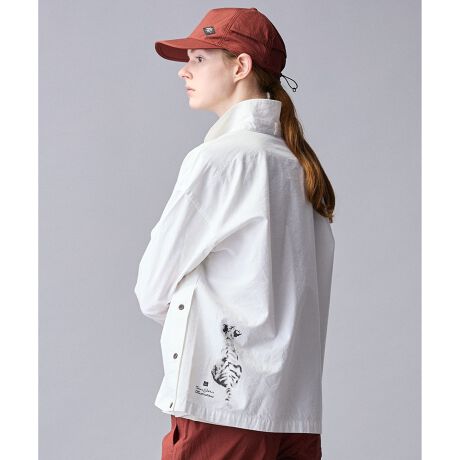 「自然」をテーマに、野生動物たちを伝統的な手法で描いたモチーフが特徴です。脇部分にはボタンを配しており、お好みに合わせてスリットのように開けるなどアレンジが楽しめます。