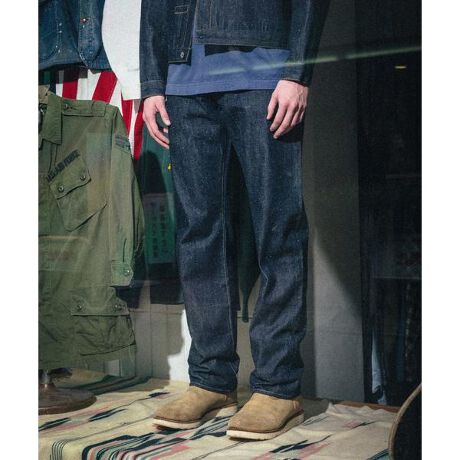生地にはリジッドデニムを使用。着用や洗いを重ねることで表情が変化し、着るほどに愛着が深まる仕上がりとなっています。