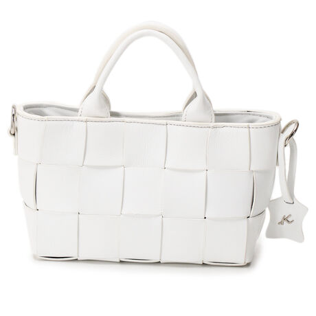 贅沢に革を編み上げた横型2WAYミニバッグ
