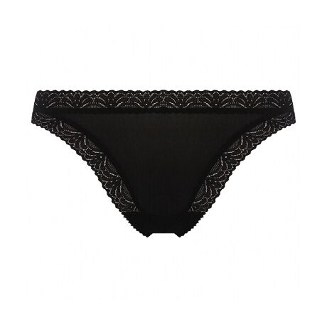 滑らかな生地を使用したバックスタイルがTの字に見えるTバックタイプのショーツ。ウエストと脚口にはモダンな細レースを施し、服にラインがひびきにくいデザインです。