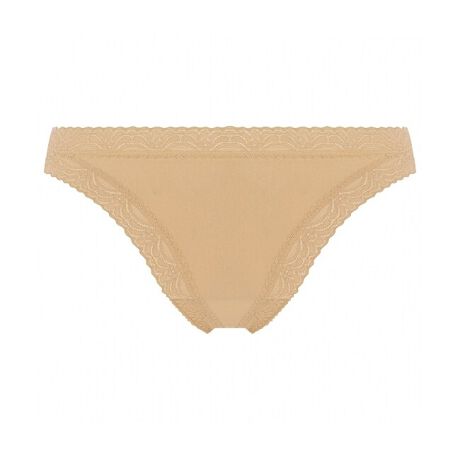 滑らかな生地を使用したバックスタイルがTの字に見えるTバックタイプのショーツ。ウエストと脚口にはモダンな細レースを施し、服にラインがひびきにくいデザインです。