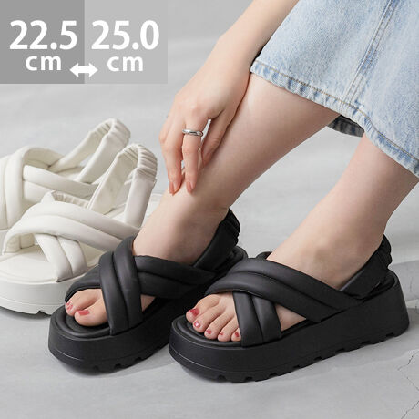 ぷっくりクロスベルトの厚底パフィーサンダル』